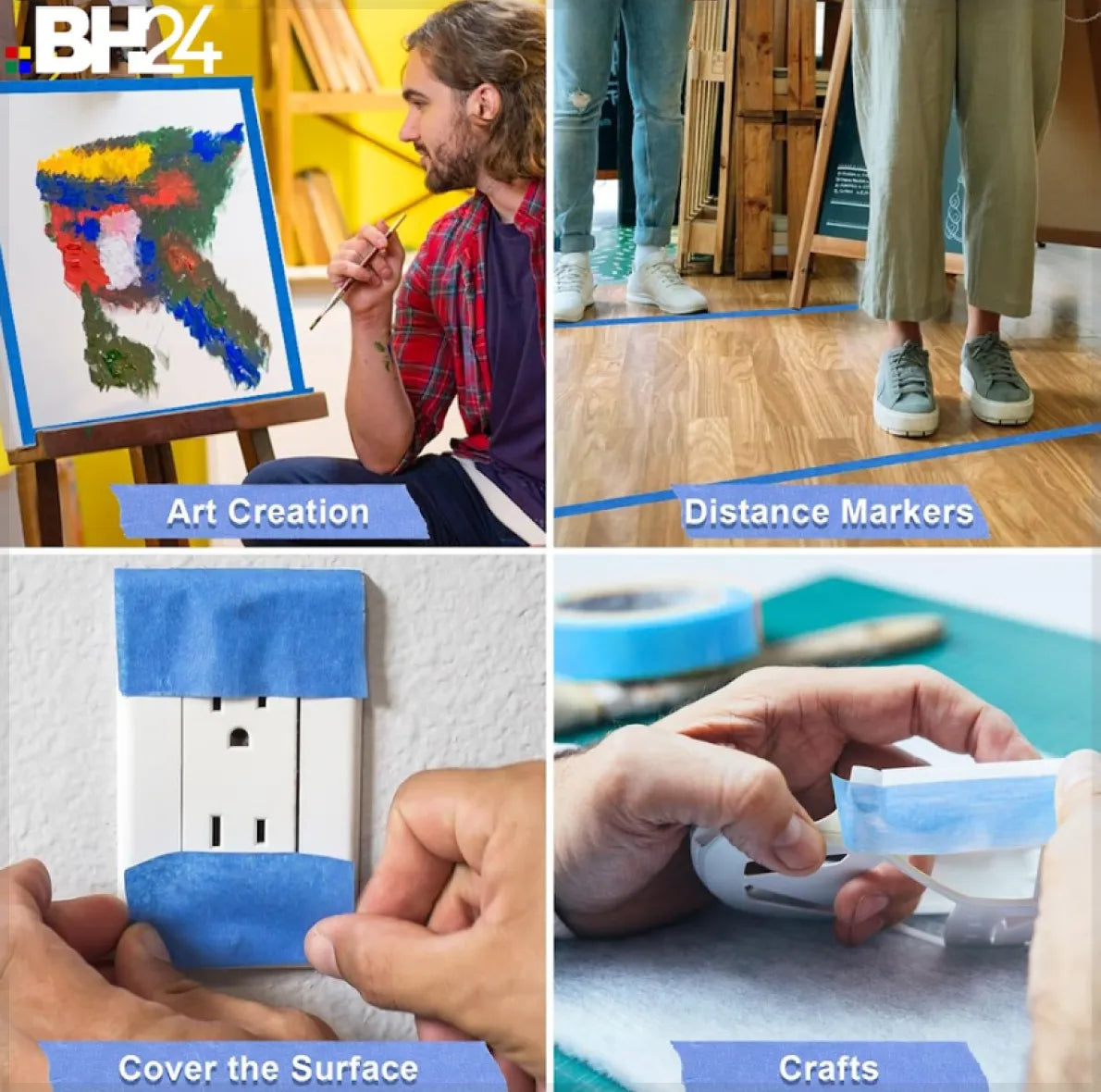 Unlike regular tapes that lose their hold over time, this blue painter’s tape maintains its adhesion for extended painting sessions, ensuring it won’t curl, lift, or detach prematurely. Its flexible yet durable design allows it to conform to curved edges, corners, and uneven surfaces, making it a must-have tool for any painter, contractor, artist, or DIY enthusiast.